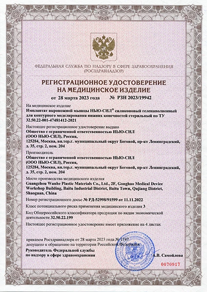 Безопасность производимых нами имплантатов подтверждена Федеральной службой по надзору в сфере здравоохранения (Росздравнадзор): регистрационное удостоверение № РЗН 2023/19942 от 28 марта 2023 года.