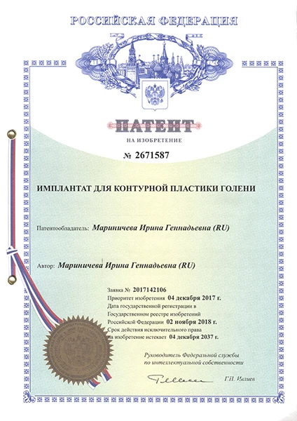 Мы рады сообщить вам, что для решения этой проблемы пластический хирург, доктор медицинских наук Ирина Геннадьевна Мариничева разработала имплантаты усовершенствованной конструкции (патент на изобретение RU 2671587 C1), которая позволяет получить хороший и стабильный результат без нежелательных последствий.